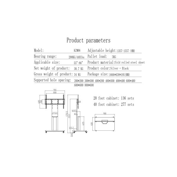 Type : Mobile Stand with Wheels For 65 75 Inch Interactive Whiteboard